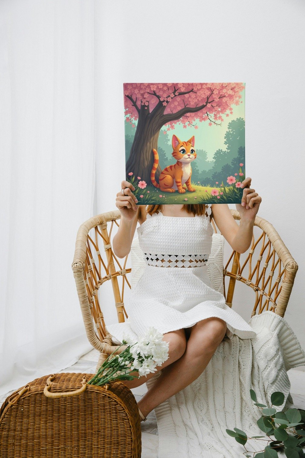 Add a serene touch of nature to your decor with this charming cat artwork, perfect for those who appreciate the beauty of a flowering tree. Download instantly and enjoy!